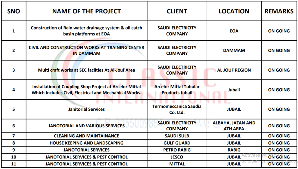 We would like to introduce ourselves as one of the best project support service-oriented companies in the Eastern Province. Classic International contracting company is a 100% Indian owned registered company presently engaged in general contracting, Industrial support services, Operations and Maintenance and organizing highly skilled & semi skilled manpower. It was established in order to provide the above mentioned services for the Economic and Industrial development of the Kingdom of Saudi Arabia.