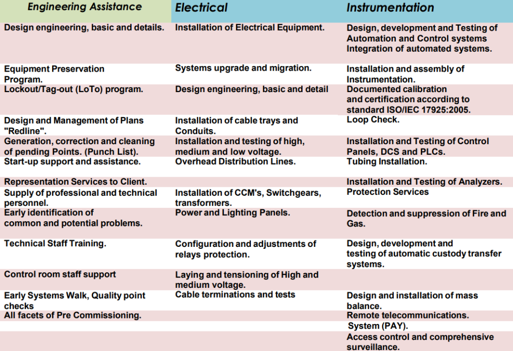 At Contelec Inc., we have hard working and highly experienced staff with the know-how in electrical and instrumentation systems that guarantees the execution of the distinct Procurement phases of the project and Construction from Engineering, (EPC), including