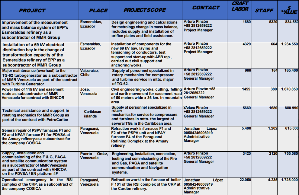 Some of our projects include the supply of personnel and technicians of a certain profile and specific positions in managerial, supervisory and technical support.